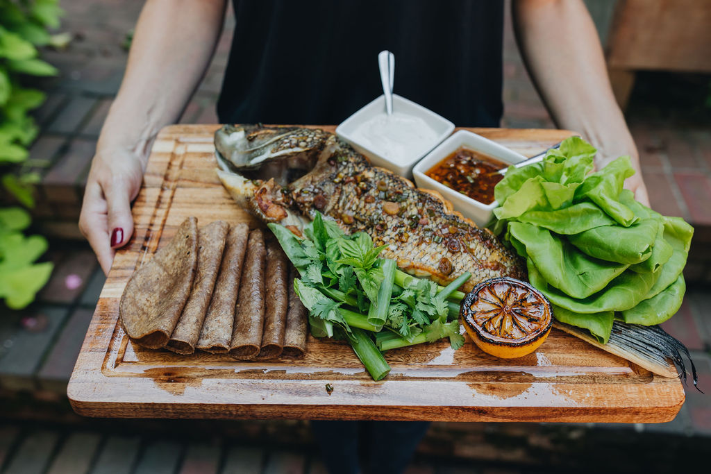 • Korean Pork BBQ: A fusion of Korean and Mexican cuisines, featuring sushi rice, cucumber kimchi, and Korean BBQ sauce served with white rice and lettuce wraps.