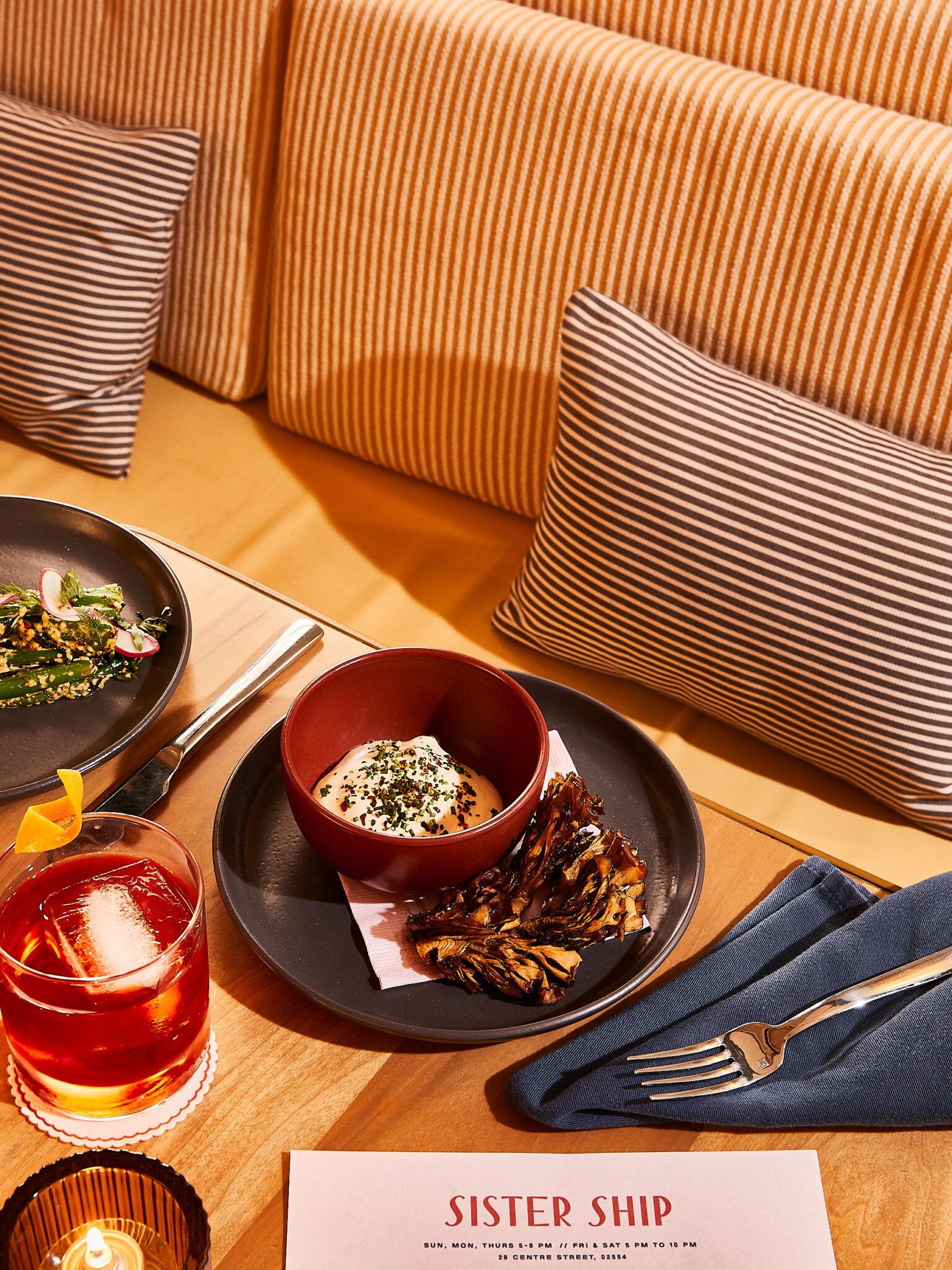Nestled within the Faraway Hotel in downtown Nantucket, Sister Ship is a restaurant, café, and relaxed cocktail club offering elevated cocktails alongside seafood-forward, Mediterranean-inspired dishes. The menu showcases New England seafood and local ingredients, providing a unique dining experience that blends coastal charm with Mediterranean flavors.