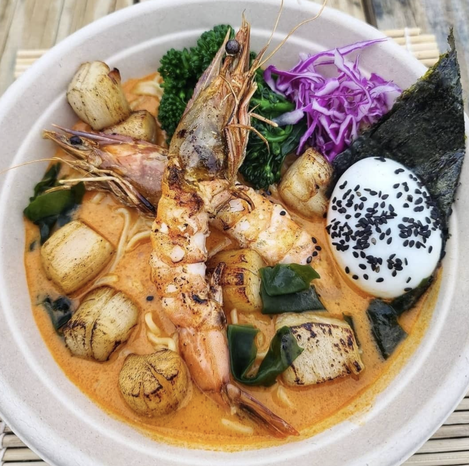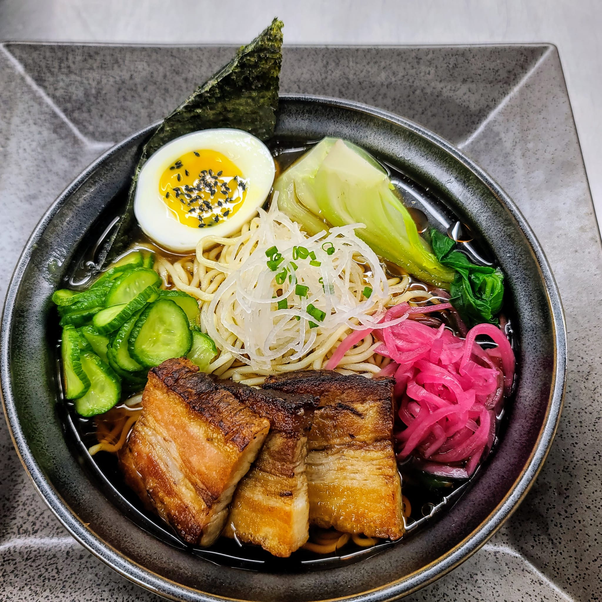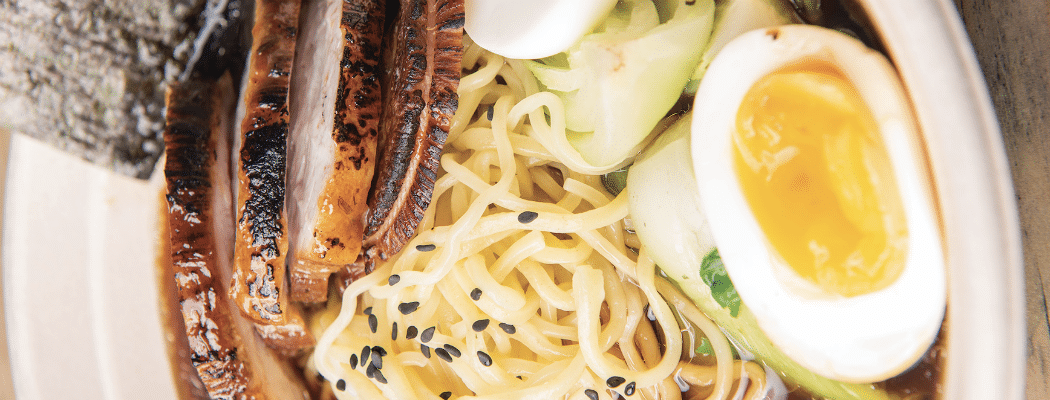 • Classic Miso Crispy Chicken Ramen: A hearty bowl of miso-based broth with crispy chicken, baby bok choy, and a soft egg.