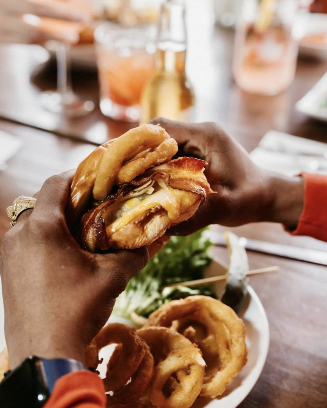 • Rose Burger: A house specialty featuring a juicy beef patty topped with cheddar, bacon, lettuce, and tomato.