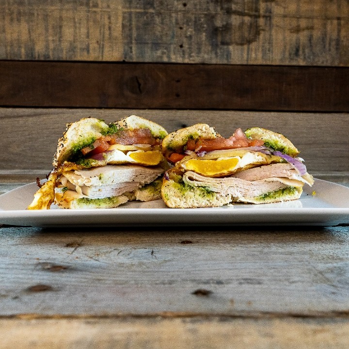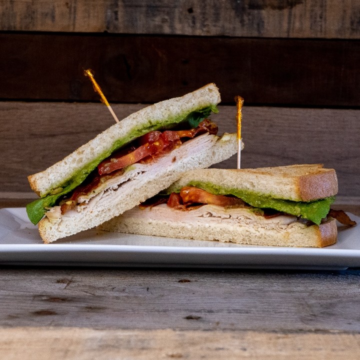 • Tom Nevers Turkey Club: Oven-roasted turkey, bacon, lettuce, tomato, mayo, and avocado spread on your choice of bread.