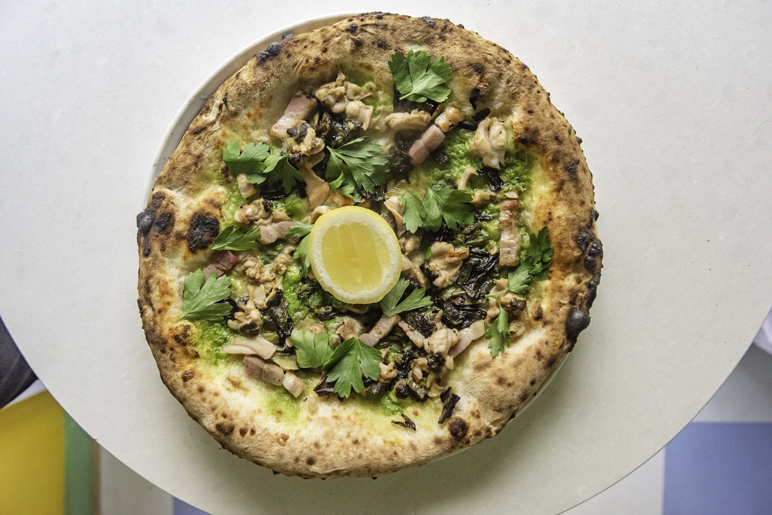 • The 'Hog: Features local clams, bacon, spring onions, potato, and pecorino, offering a unique twist on traditional toppings.